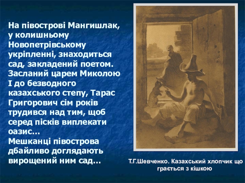 Т.Г.Шевченко. Казахський хлопчик що грається з кішкою