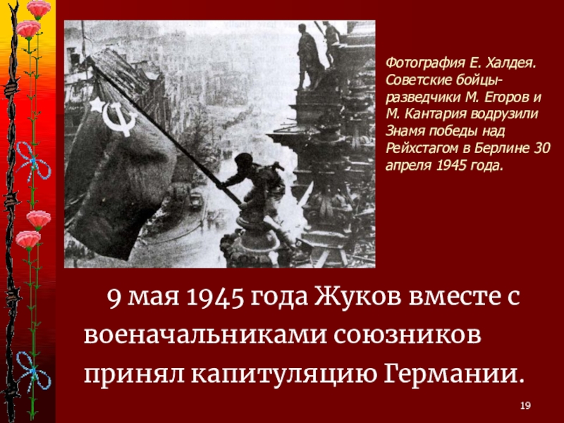 9 мая 1945 года Жуков вместе с военачальниками союзников принял капитуляцию Германии.