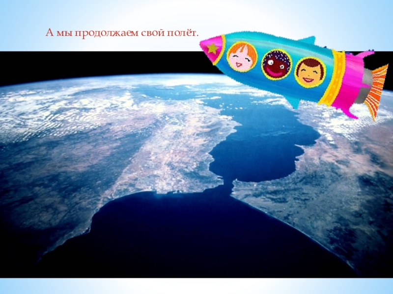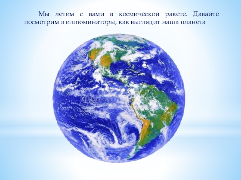 Слайд 3Мы летим с вами в космической ракете. Давайте посмотрим в иллюминаторы,