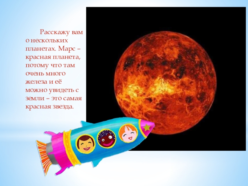 Слайд 8Расскажу вам о нескольких планетах. Марс – красная планета, потому что
