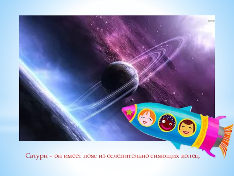 Слайд 9Сатурн – он имеет пояс из ослепительно сияющих колец.