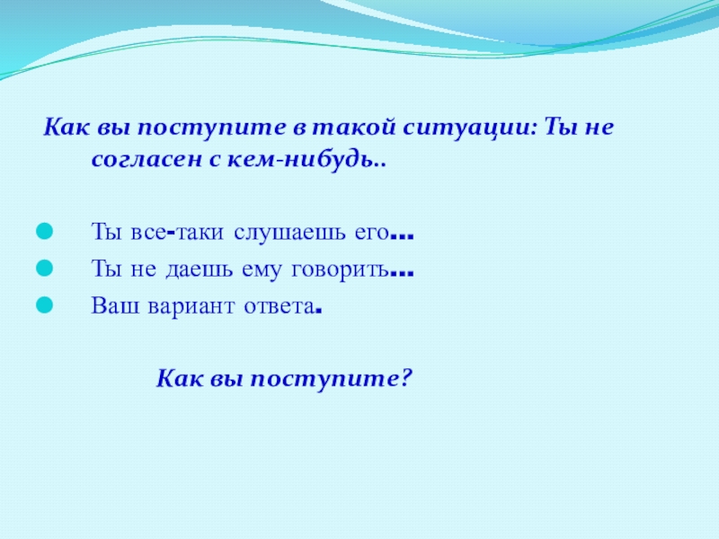 Как вы поступите в такой ситуации: Ты не согласен с кем-нибудь..Ты все-таки слушаешь