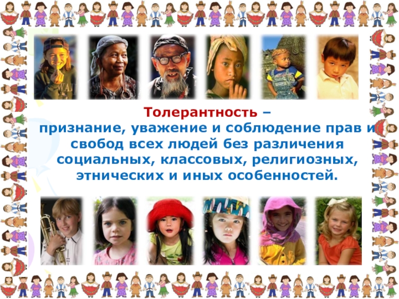 Толерантность – признание, уважение и соблюдение прав и свобод всех людей без различения социальных, классовых, религиозных, этнических