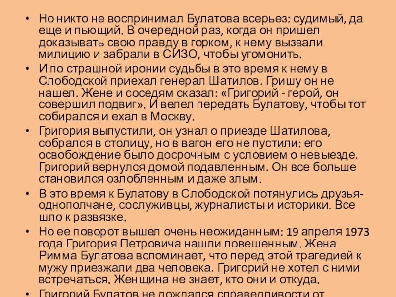 Слайд 22Но никто не воспринимал Булатова всерьез: судимый, да еще и пьющий.