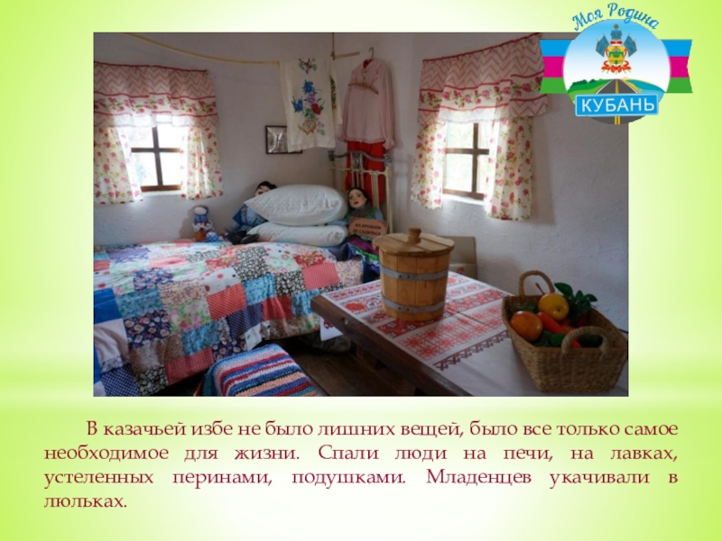 Слайд 10В казачьей избе не было лишних вещей, было все только самое