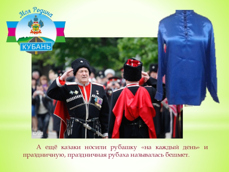 Слайд 16А ещё казаки носили рубашку «на каждый день» и праздничную, праздничная