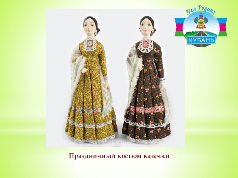 Слайд 19- А теперь посмотрите на костюм казачки. Видите, какой красивый костюм,