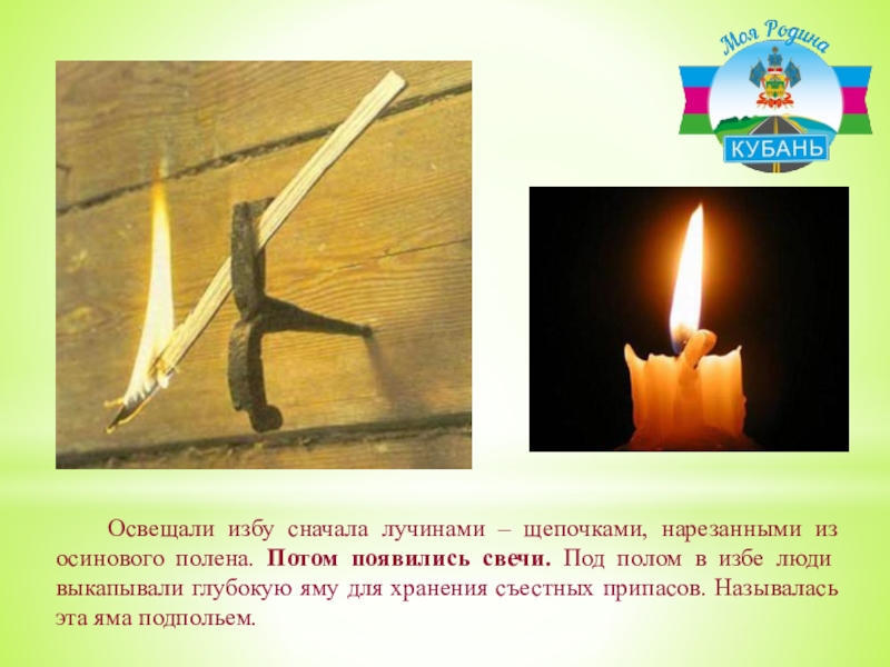 появились свечи. Под полом в избе люди выкапывали глубокую яму для хранения съестных припасов. Называлась эта яма подпольем.