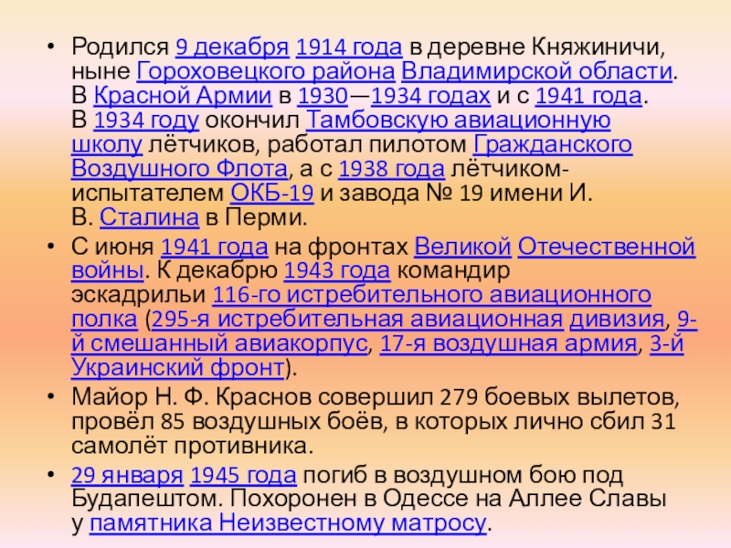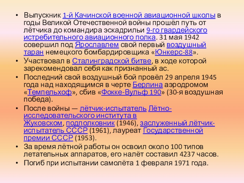 Слайд 25Выпускник 1-й Качинской военной авиационной школы в годы Великой Отечественной войны прошёл путь
