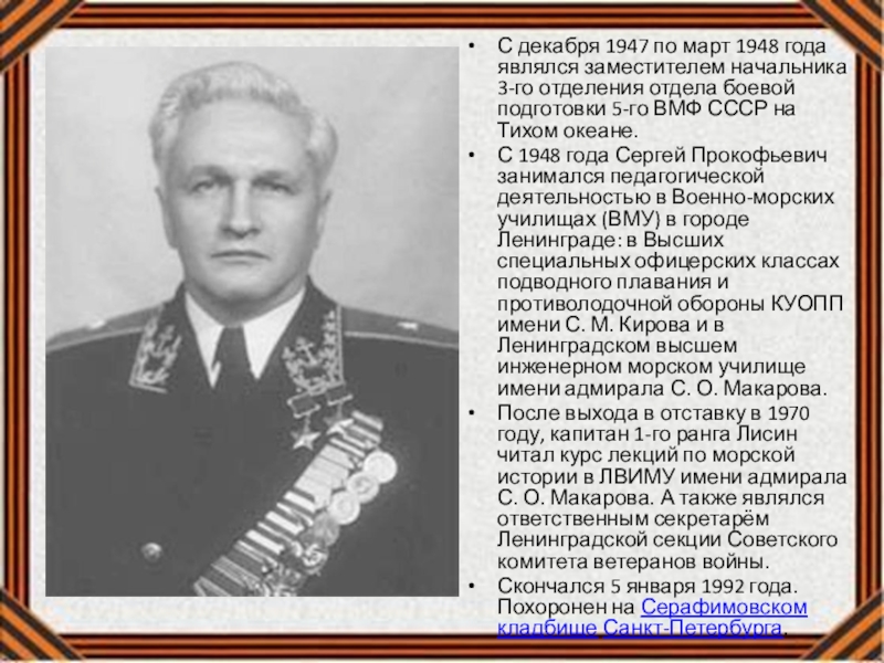 Слайд 9С декабря 1947 по март 1948 года являлся заместителем начальника 3-го