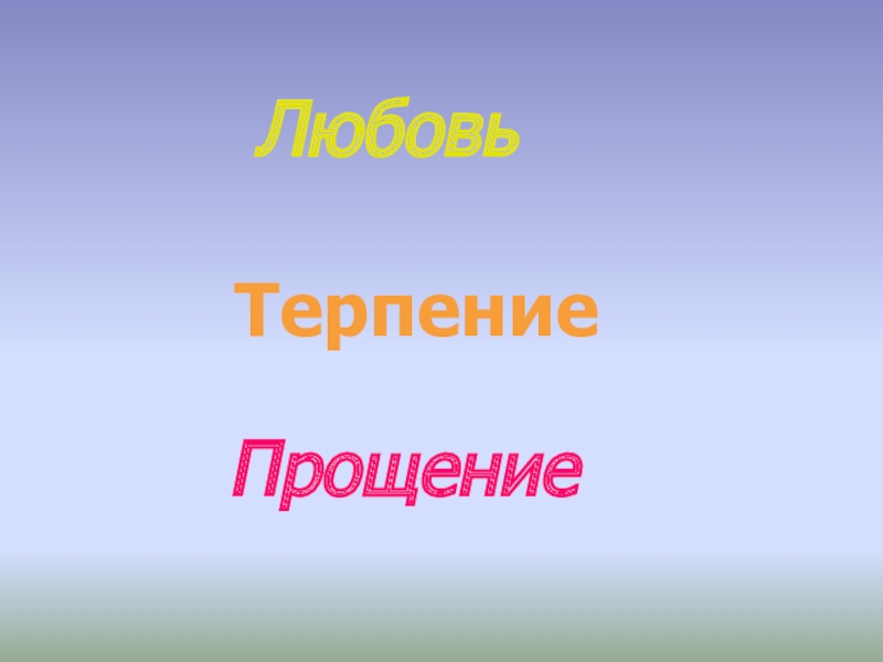 прощение, снисходительность, мягкость, милосердие, сострадание, терпение, любовь.
