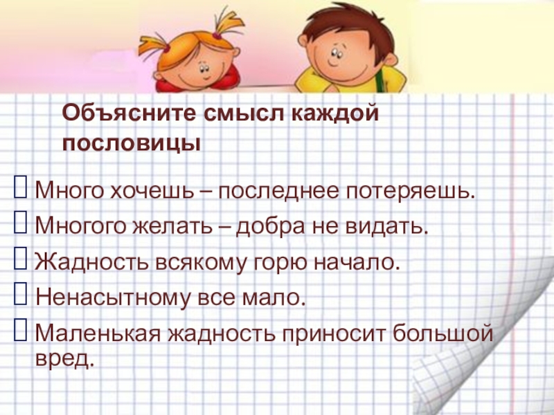 Объясните смысл каждой пословицы