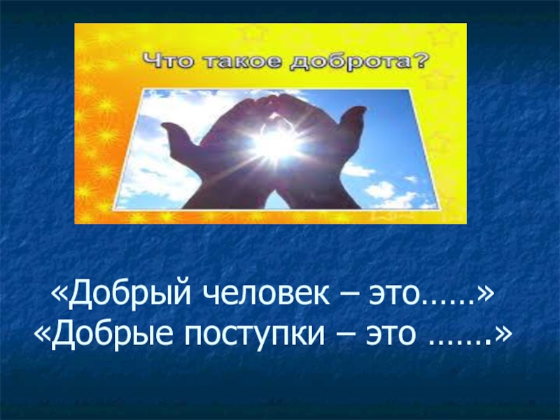Слайд 6 «Добрый человек – это……» «Добрые поступки – это …….»