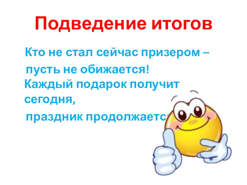 Подведение итогов  Кто не стал сейчас призером –   пусть не обижается!  Каждый подарок