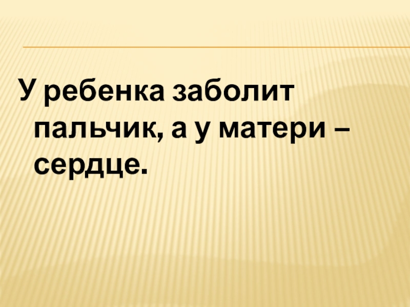 Слайд 9У ребенка заболит пальчик, а у матери – сердце.