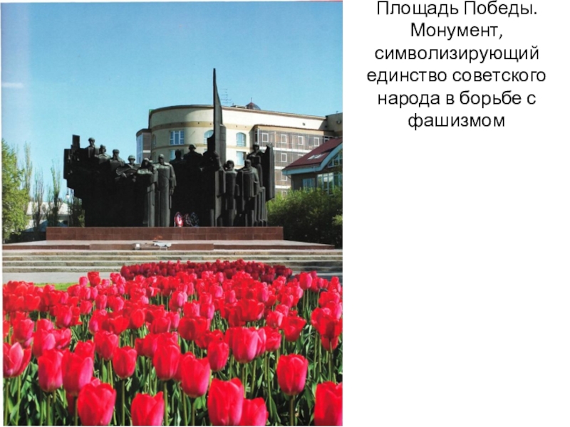 Слайд 12Площадь Победы. Монумент, символизирующий единство советского народа в борьбе с фашизмом