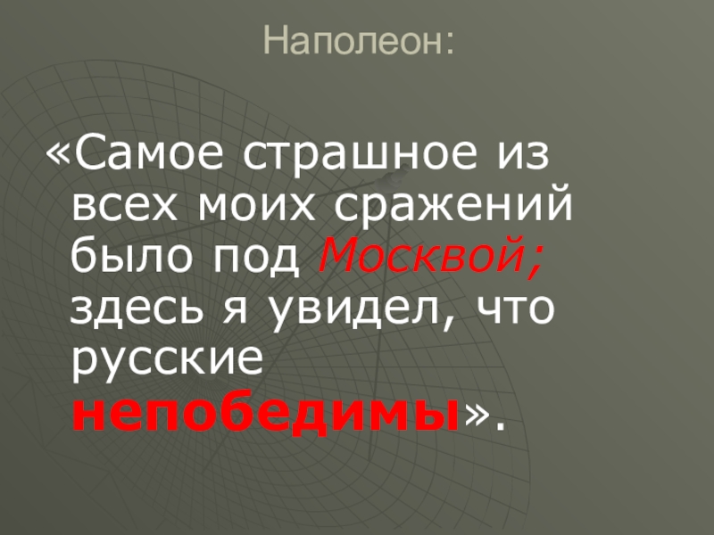 Наполеон: «Самое страшное из всех моих сражений было под Москвой; здесь я увидел, что русские