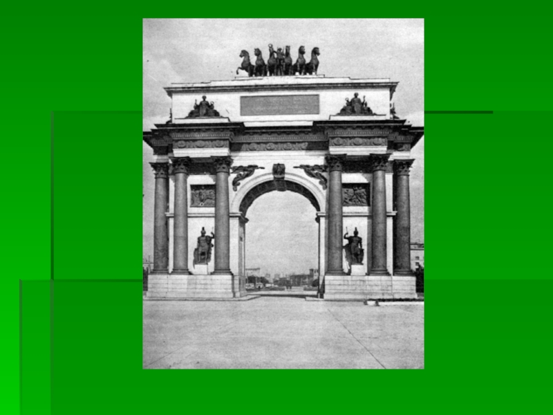 Скульптурно-архитектурная композиция символизирует неприступность России, которую обороняли две русские армии, соединившиеся
