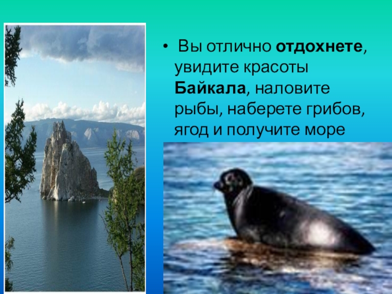 Слайд 13 Вы отлично отдохнете, увидите красоты Байкала, наловите рыбы, наберете грибов,