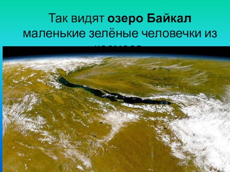 Слайд 3Так видят озеро Байкал маленькие зелёные человечки из космоса.