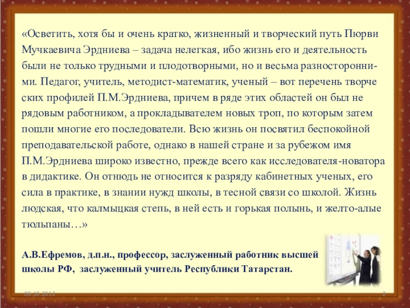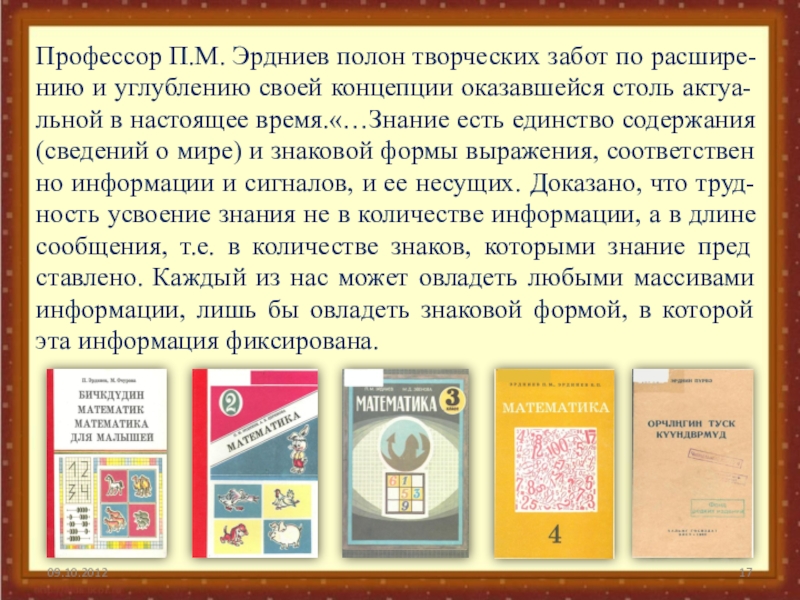 Слайд 17Профессор П.М. Эрдниев полон творческих забот по расшире- нию и углублению