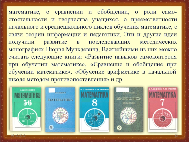 Слайд 12математике, о сравнении и обобщении, о роли само-стоятельности и творчества учащихся,