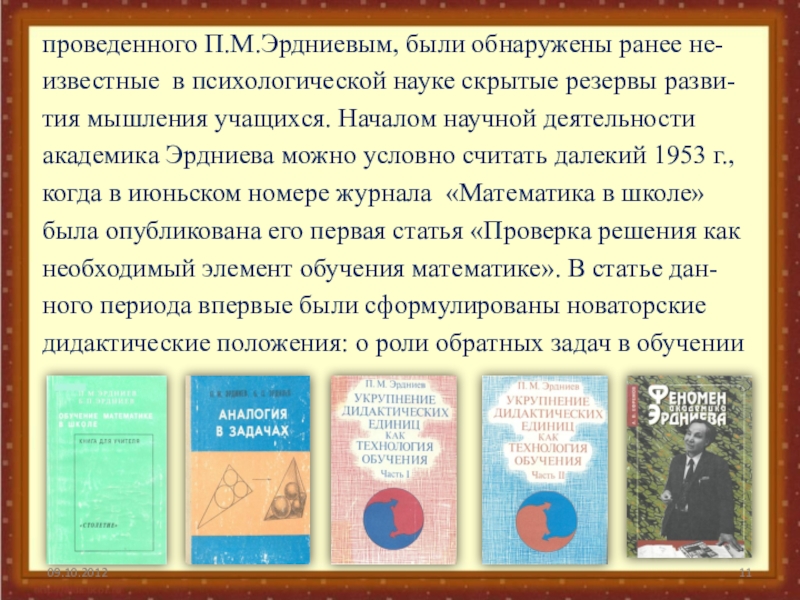 Слайд 14Учитель математики Эрдниев на своих уроках убедился, что при раздельном изучении