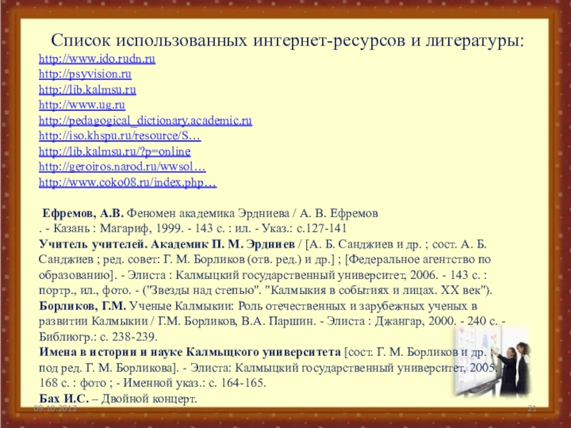 Слайд 21Список использованных интернет-ресурсов и литературы:
