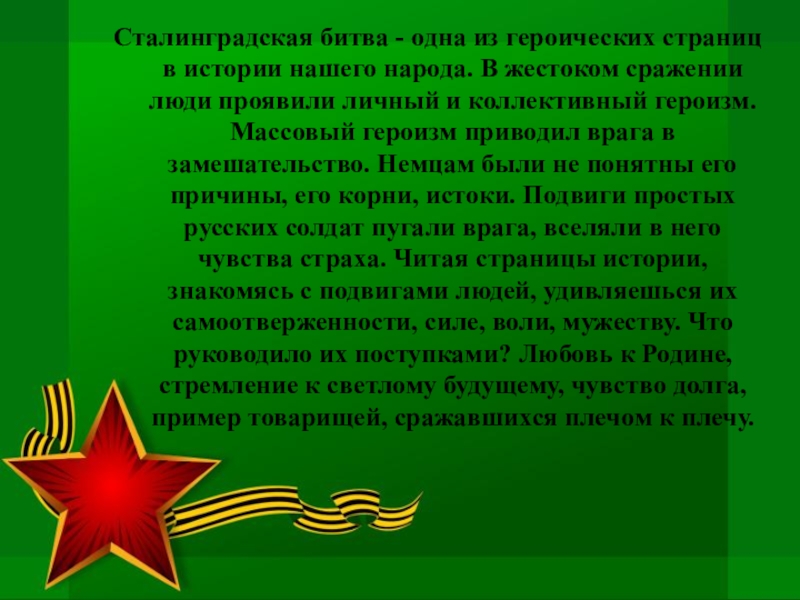 Сталинградская битва - одна из героических страниц в истории нашего народа.
