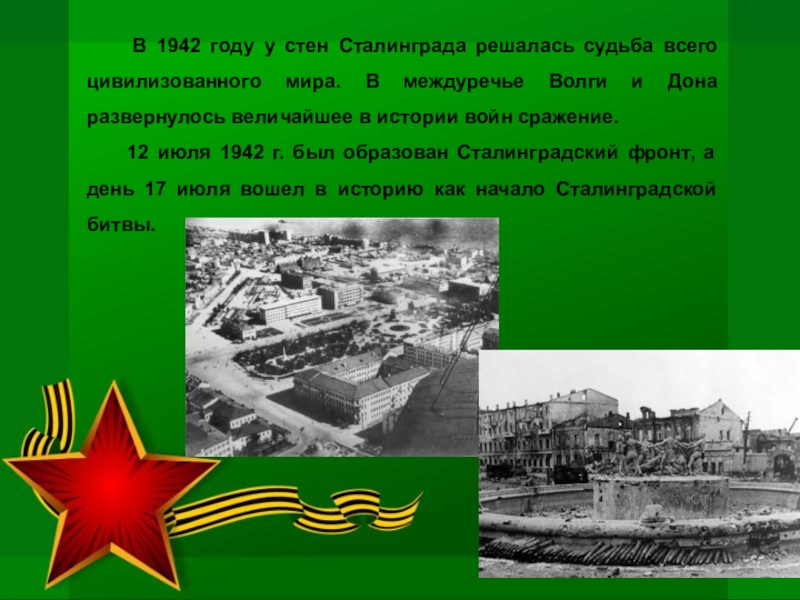 12 июля 1942 г. был образован Сталинградский фронт, а день 17 июля вошел в историю как начало Сталинградской битвы.