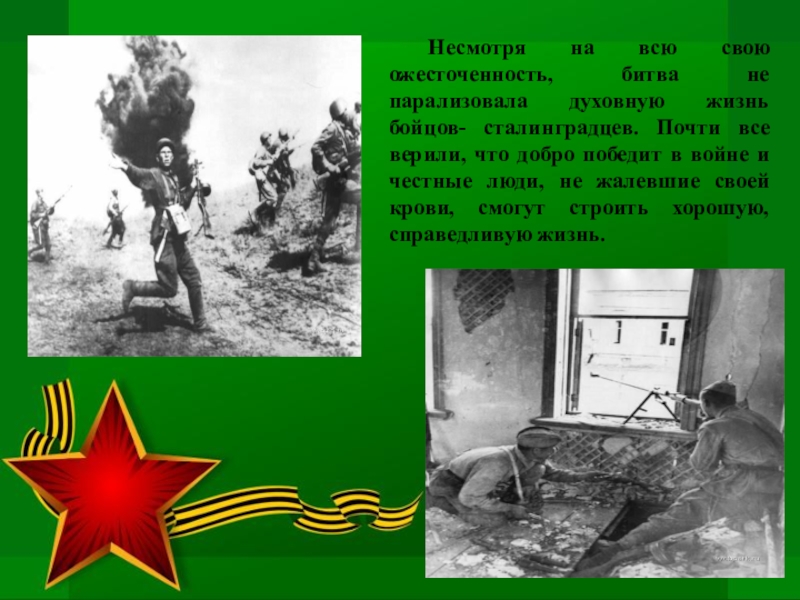 Слайд 9Несмотря на всю свою ожесточенность, битва не парализовала духовную жизнь бойцов-