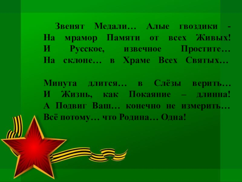 Слайд 11И такие ценности, как любовь к Родине, честь и воинский долг,