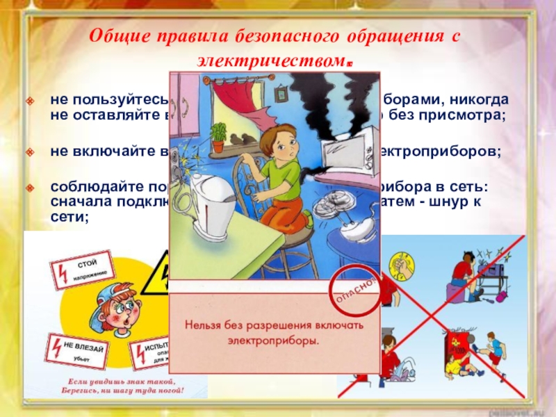 Слайд 8Общие правила безопасного обращения с электричеством.