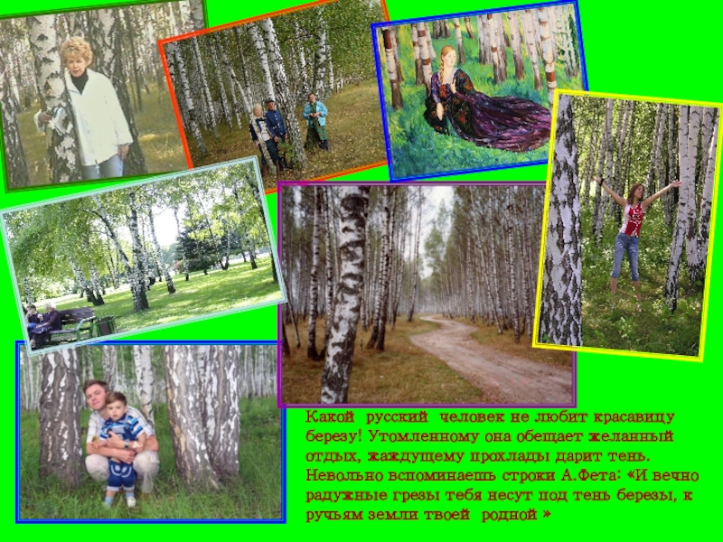 Слайд 9Какой русский человек не любит красавицу березу! Утомленному она обещает желанный