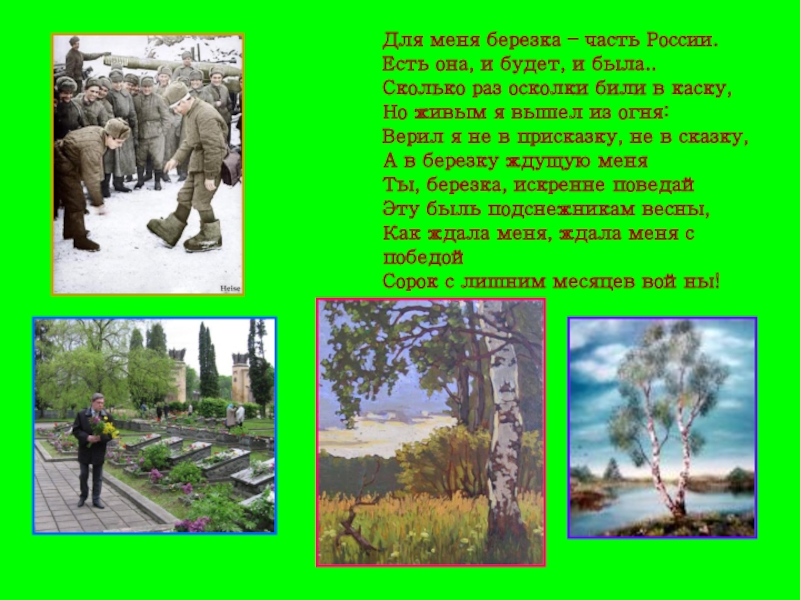 Слайд 11Я помню, ранило березу