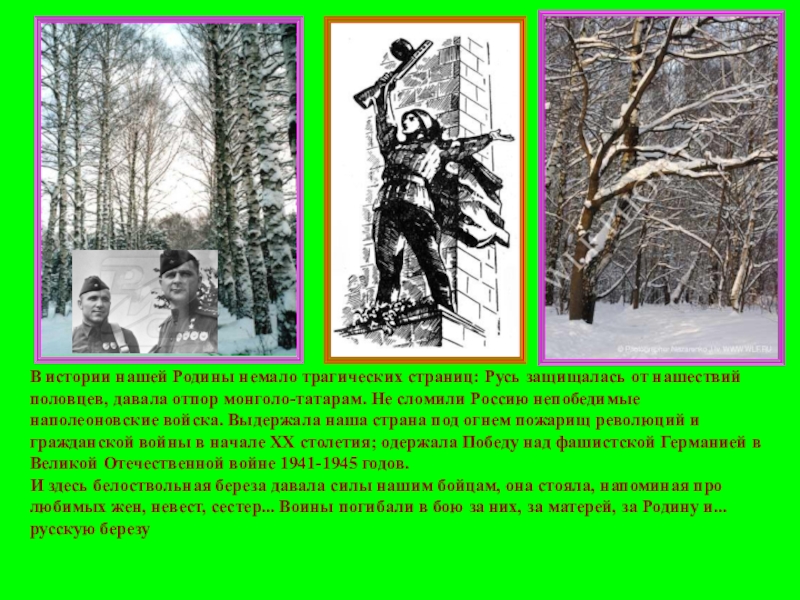 Слайд 10В истории нашей Родины немало трагических страниц: Русь защищалась от нашествий