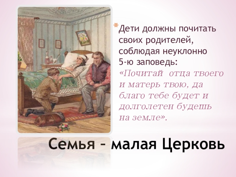 Семья – малая ЦерковьДети должны почитать своих родителей, соблюдая неуклонно       5-ю