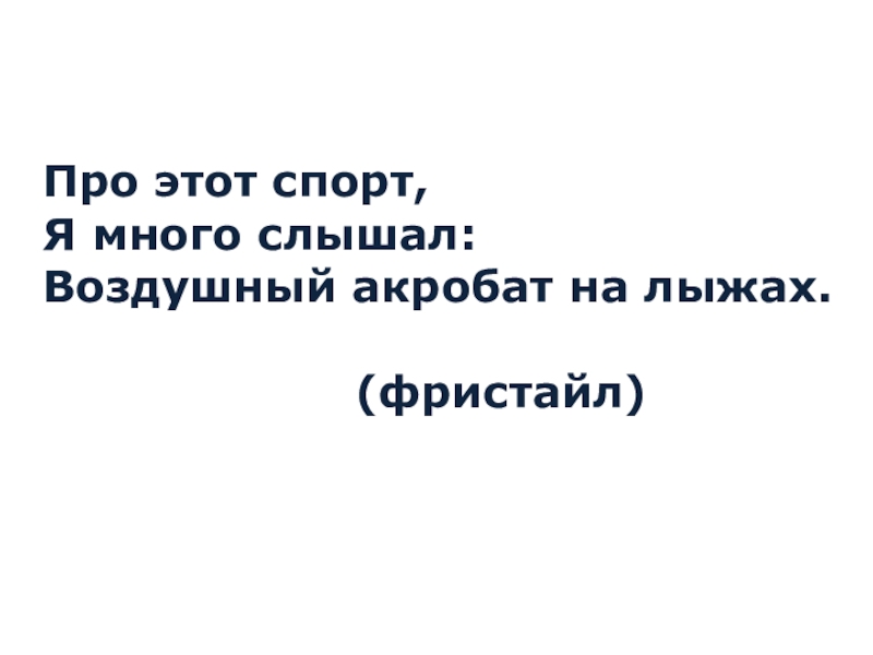 Про этот спорт,Я много слышал:Воздушный акробат на лыжах.