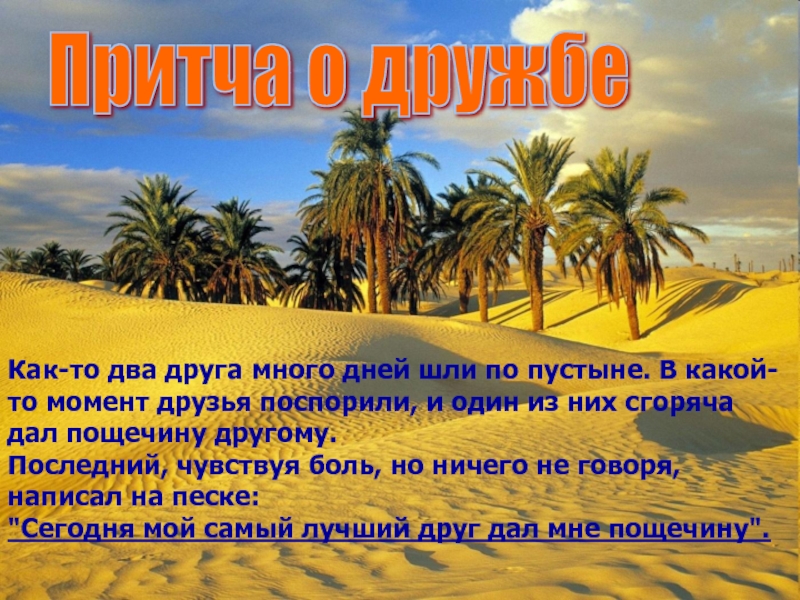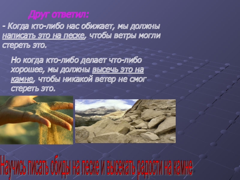 - Когда кто-либо нас обижает, мы должны написать это на песке, чтобы ветры могли стереть это.