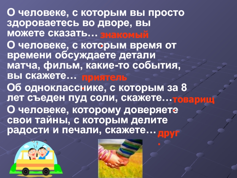 Это сайт презентаций, где можно хранить и обмениваться своими презентациями, докладами, проектами, шаблонами в формате PowerPoint с другими пользователями. Мы помогаем школьникам, студентам, учителям, преподавателям хранить и обмениваться учебными материалами.