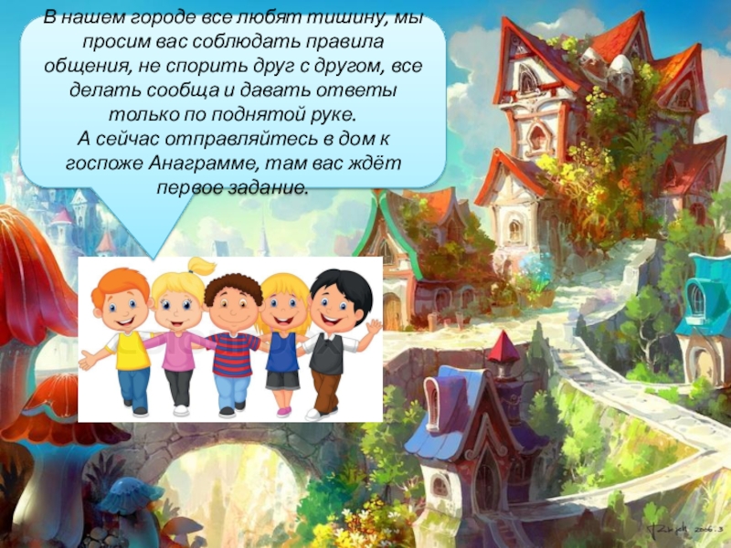 А сейчас отправляйтесь в дом к госпоже Анаграмме, там вас ждёт первое задание.