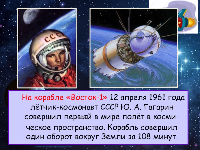 Гагарин совершил первый в мире полёт в косми-