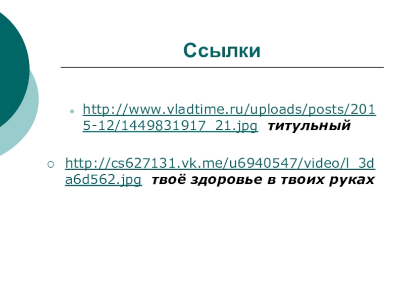 Ссылкиhttp://www.vladtime.ru/uploads/posts/2015-12/1449831917_21.jpg титульныйhttp://cs627131.vk.me/u6940547/video/l_3da6d562.jpg твоё здоровье в твоих руках
