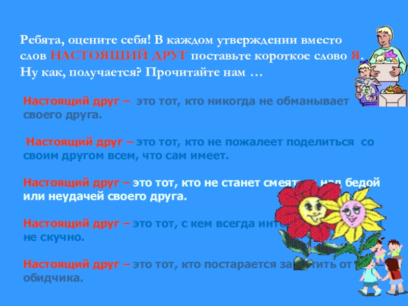 Настоящий друг – это тот, кто постарается защитить от обидчика.