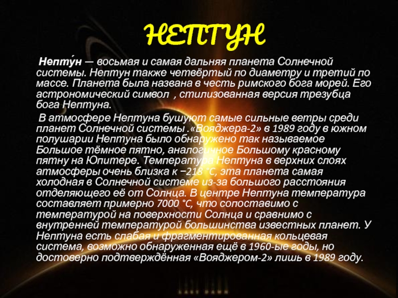 Непту́н — восьмая и самая дальняя планета