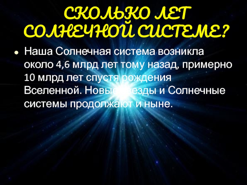 Слайд 20СКОЛЬКО ЛЕТ СОЛНЕЧНОЙ СИСТЕМЕ?