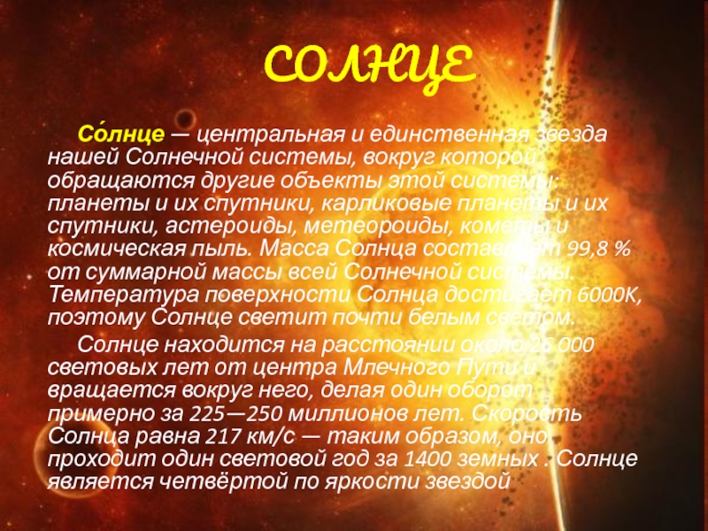 Слайд 2 СОЛНЦЕ