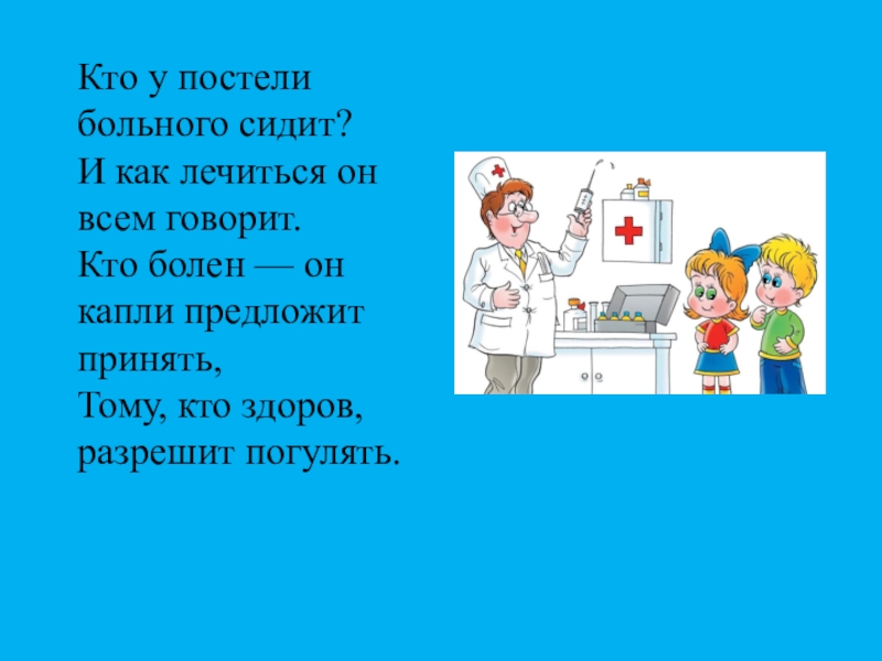 — он капли предложит принять,  Тому, кто здоров, разрешит погулять.