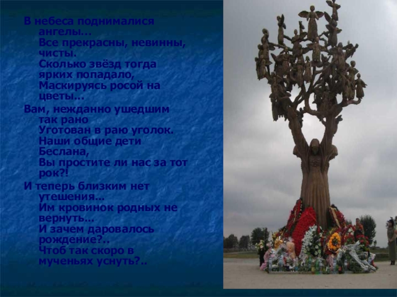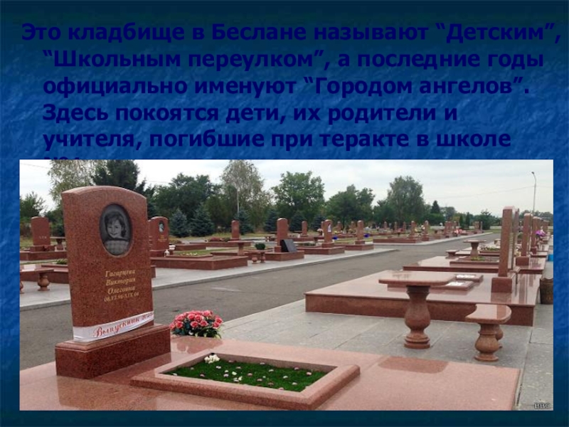 официально именуют “Городом ангелов”. Здесь покоятся дети, их родители и учителя, погибшие при теракте в школе №1.