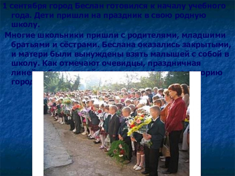 Слайд 51 сентября город Беслан готовился к началу учебного года. Дети пришли